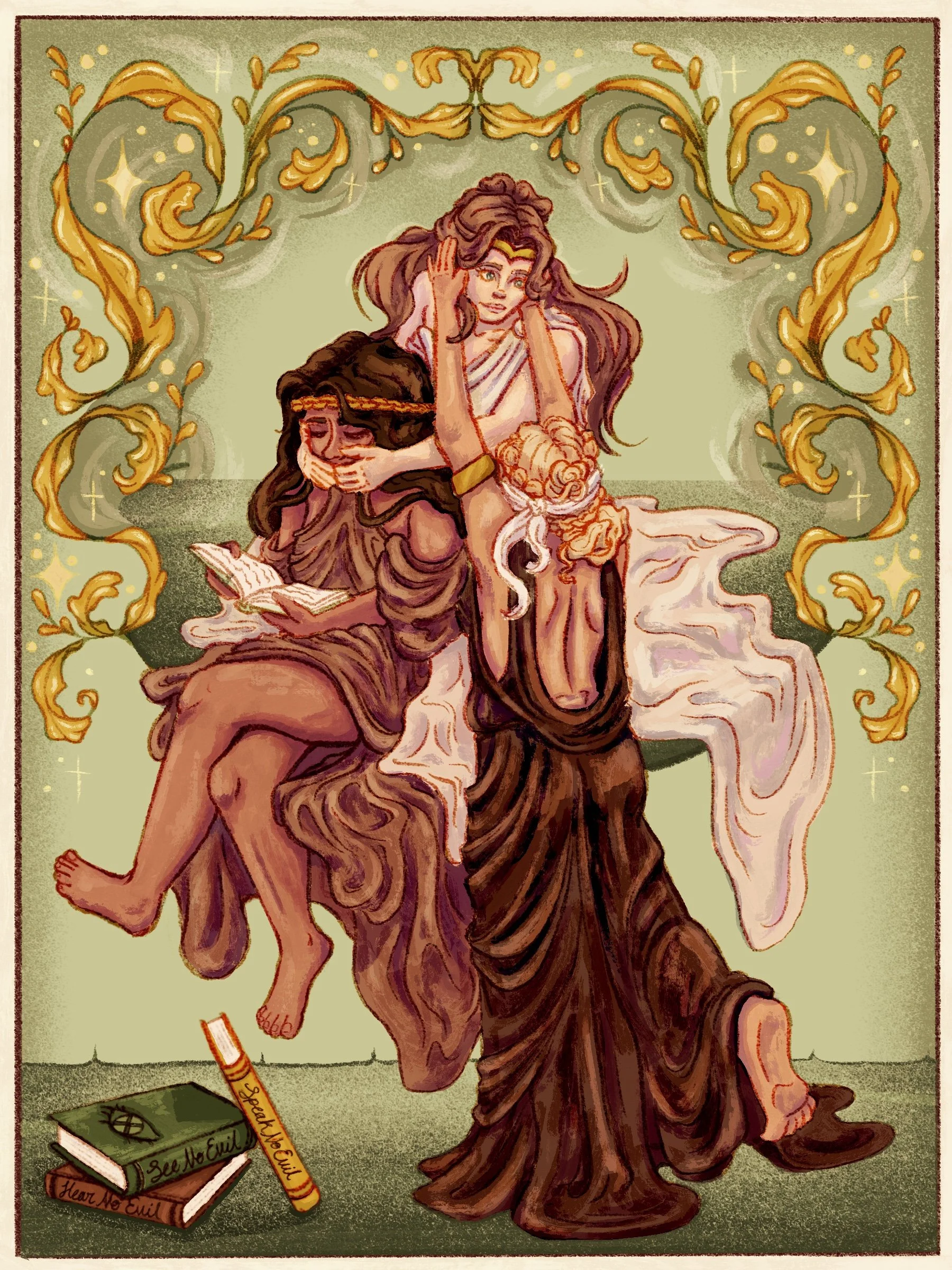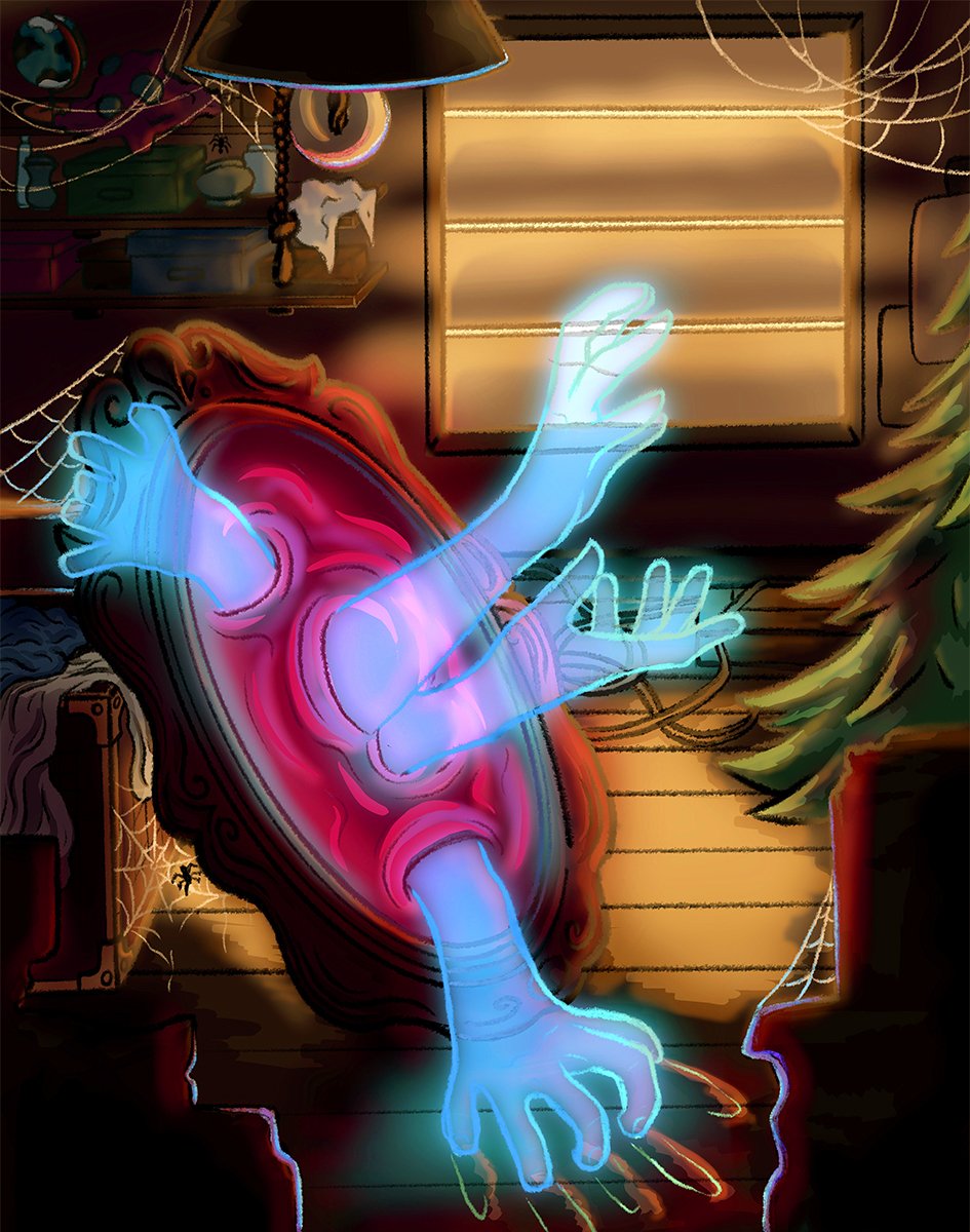 Haunted Attic Mirror Watercolor Angel Caraval Book Cover Flying Into Dawn Sailing on a Full Moon Follow the Faun Heros & Villians Hear No, See No, Speak No Evil